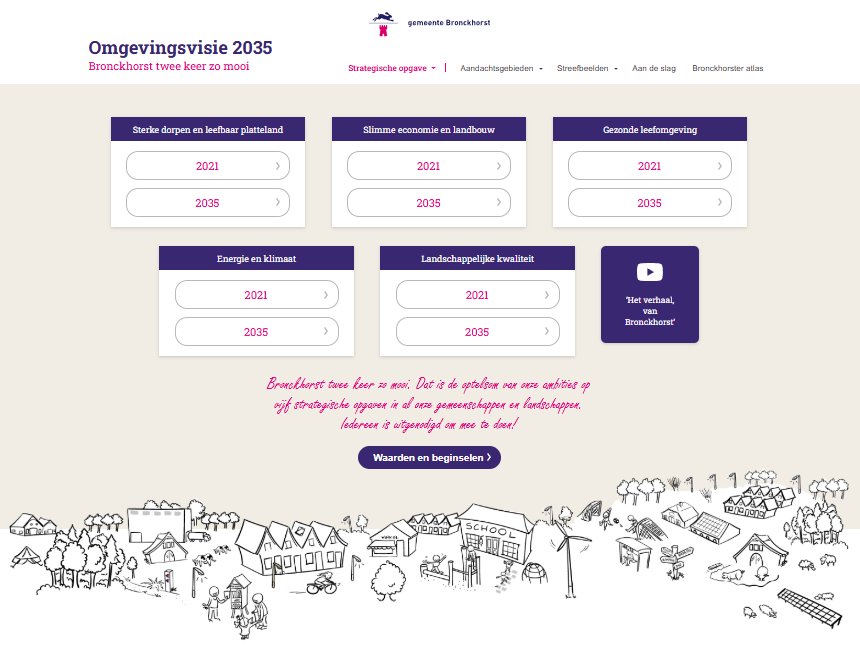 Voor de omgevingsvisie is een nieuwe website in gebruik genomen: www.omgevingsvisiebronckhorst.nl